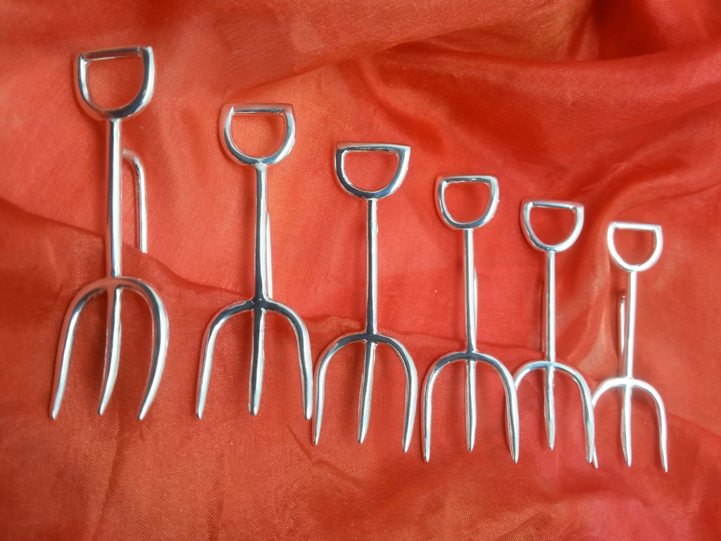 The photos below show the process of creating six silver brooches for the ‘Forkers’ association using traditional silversmithing techniques. Jackie and I created the brooches in stages, using 925 silver and six solder joints per brooch to bring the sections together. We are both very pleased with the results, and hope that the Forkers enjoy wearing their rather special emblems.